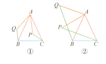 3 - 3 [阅读材料]如图①,在△ABC中,AB = AC,P是△ABC内部任意一点,将AP绕点A顺时针旋转至AQ,使∠QAP = ∠BAC,连接BQ,CP,可得BQ = CP。