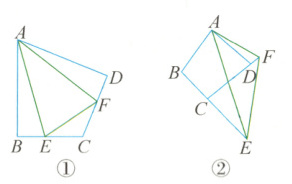 如图②,在$BE$上取一点$G$,使$BG = DF$,连接$AG$。