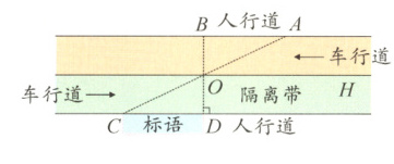 举一反三训练5 - 1:☆状状同学沿一条笔直街道的人行道行走,在由A处步行到B处的过程中,通过隔离带的空隙O,刚好浏览完对面人行道宣传墙上的标语,其具体信息汇集如下: