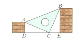 5 - 2:★[西安莲湖区期末]如图,小明同学用10块高度都是2cm的相同长方体小木块垒了两堵与地面垂直的木墙,木墙之间刚好可以放进一个等腰直角三角尺ACB (AC = CB,∠ACB = 90°),点C在DE上,点A,B分别在木墙的顶端。求两堵木墙之间的距离。