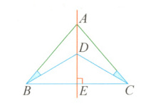 例6如图,直线AE是线段BC的垂直平分线,垂足为E,试说明:∠ABD = ∠ACD。