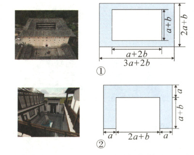 举一反三训练6 - 1★教材P31复习题T10变式题|{传统文化.福建土楼)某校同学在社会实践的过程中,遇到一些各具特色的建筑物,有被列入《世界文化遗产名录》的福建土楼,也有新中式风格的传统民宿,同学们对于哪个建筑物的占地面积更大展开了讨论。