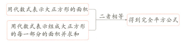 例2 用如图所示的方式分割正方形,请用两种不同的方法表示大正方形的面积,从中你能发现什么?