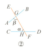 ②当直线l₁//l₂时,求∠β的度数。