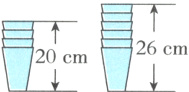 7. 把一些规格相同的杯子叠起来(如图),4个杯子叠起来高20cm,6个杯子叠起来高26cm,$n$个杯子叠起来的高度为( )cm。