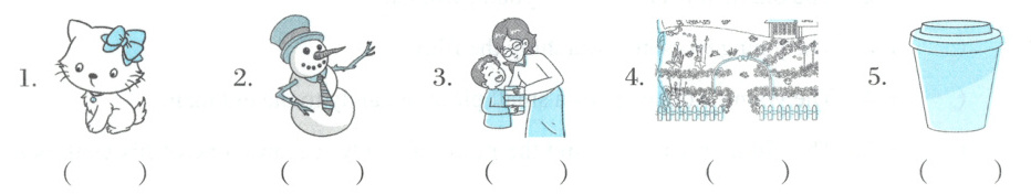 A. a small garden B. make a snowman C. a little kitten D. borrow a book E. a paper cup