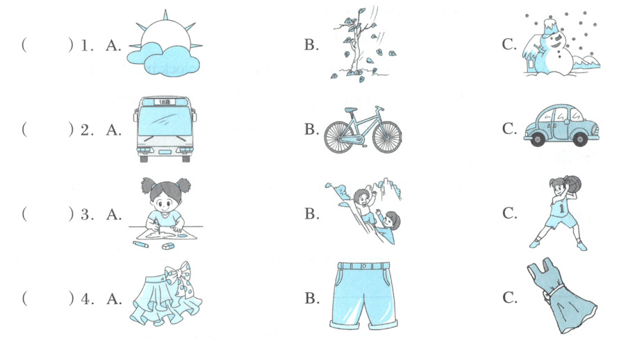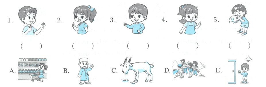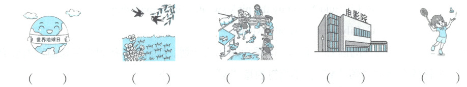 一、听句子,用数字1−5给下列各图排序。 (5分)