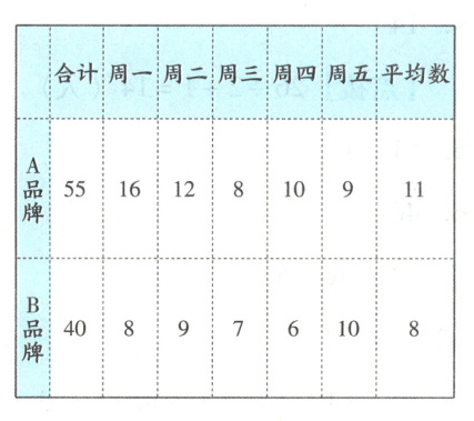 4. 上周周一~周五某网店销售手机数量如左下表,根据左下表的信息完成右下表(单位:部)。(7分)