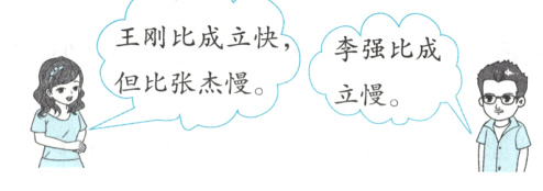 在自行车比赛中,王刚、成立、李强、张杰四人的成绩是3.05分、3.15分、3.50分、2.90分。在收集比赛成绩时,不甚将他们的成绩打乱了顺序。你能根据裁判员的叙述,找回他们的成绩并排出正确的比赛名次吗?