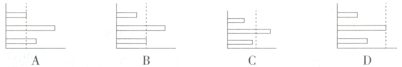 5. 下列统计图中,虚线所在位置能反映这三个数的平均数的是( )。