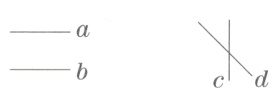 1. 如图,直线 a 和直线 b( ),直线 c 和直线 d( )。