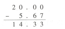 8.4 + 12.86 = 20 - 5.67 = ☆7.4 - 3.68 = ☆12.9 + 5.01 =