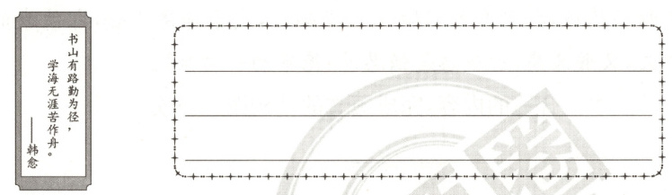 1. 新育人品德修养(朝阳区·仿练)这是京京的书签,请按我们的书写习惯,正确、规范地抄写。(5分)