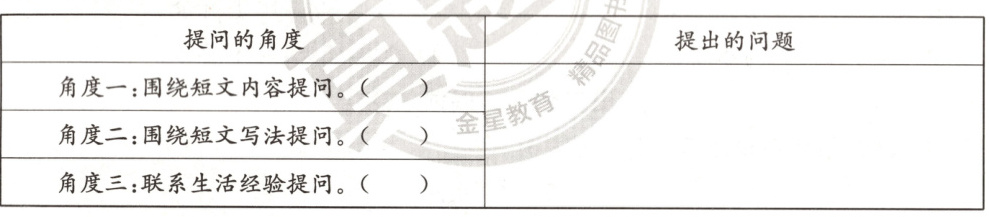 9. 结合短文,先选择一个提问的角度,在相应的括号内画“√”,再根据所选的角度提出一个问题。(4分)