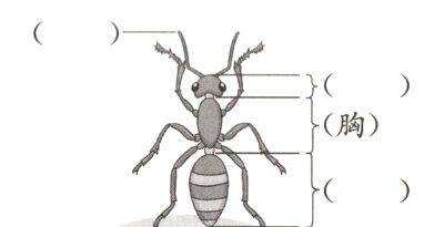 7. 观察下图,并结合短文第②自然段的内容,在括号中填写蚂蚁各个部位的名称。(3分)