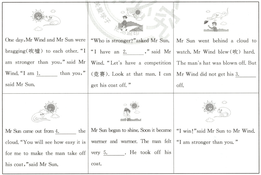 六、新素材寓言故事(平谷区)根据图片故事选择单词填空。(10 分)