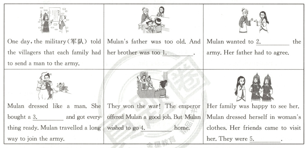 八、(东城区)看图,读故事,根据内容选择恰当的单词,把正确选项的序号写在横线上。(10分)
