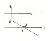 16.如图,已知l1//l2,AB⊥l1,∠ABC = 120°,则∠α = ______.