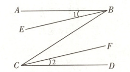 22. (8 分)如图,已知 AB//CD,∠1 = ∠2,BE 与 CF 平行吗?为什么?