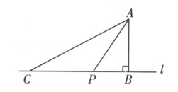 4. 如图,A是直线l外一点,过点A作AB⊥l于点B.在直线l上取一点C,连接AC,使AC = $\frac{5}{3}$AB,点P在线段BC上,连接AP.若AB = 3,则线段AP的长不可能是( )