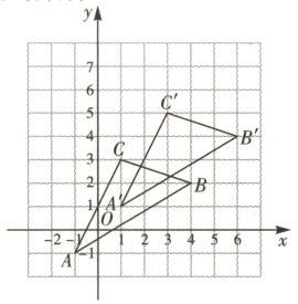 (3)三角形$A'B'C'$如图,$A'(1,1)$,$B'(6,4)$,$C'(3,5)$.