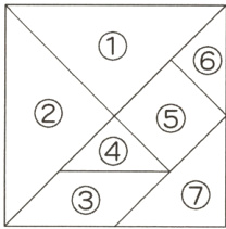 (1)如图,一套七巧板有( )块板,有( )种图形,其中( )号是平行四边形,( )号是正方形。