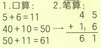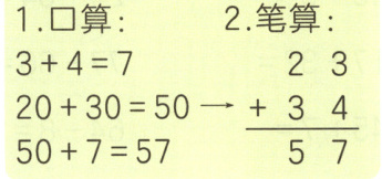 1. 口算:先将十位与个位上的数分别求和,再将结果相加。