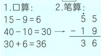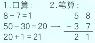 1. 口算:先将十位与个位上的数分别相减,再将结果相加。