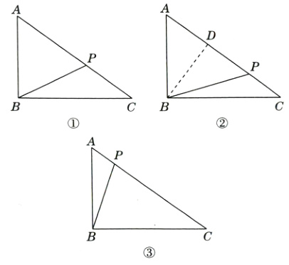②当AB = BP = 3,且点P在AC上时,如图②所示,作△ABC的高BD,则BD = $\frac{AB\cdot BC}{AC}=\frac{3\times4}{5}=2.4$,