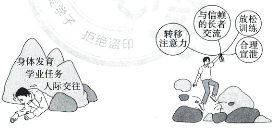 A【解析】本题考查影响情绪的因素、学会调节情绪。调节情绪需要掌握一定的方法,常用方法包括注意转移、合理宣泄、认知调节、放松训练等,掌握的方法越多,我们调节情绪的能力会越强,①符合题意;左边的漫画反映了青少年的情绪会受到身体发育、学业任务、人际交往等多方面因素的影响,②符合题意;③④说法错误。故选A。