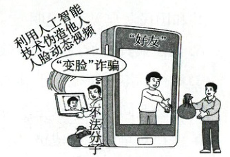 13. 随着科学技术的发展,一些不法分子利用AI技术模仿、伪造他人的声音、面孔、视频等信息进行诈骗(如右图所示)。对此类行为认识正确的是( )