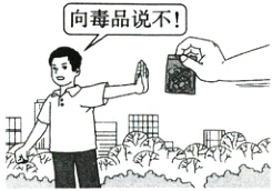 B【解析】本题考查做自强不息的中国人。漫画中的人物向毒品说不,告诉我们要磨砺坚强意志,拒绝不良诱惑;基本规则不能违反,基本界限不能逾越;要知廉耻,懂荣辱。①②③符合题意。材料未体现青春的力量,④不符合题意。故选B。