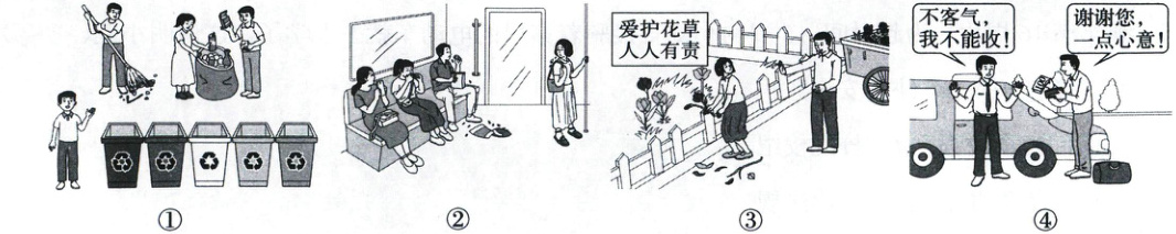 5. “知耻近乎勇”出自《礼记·中庸》,意思是知道羞耻就接近勇敢了。青少年应该自尊自爱,高扬“行己有耻” 的青春格调。以下场景里几位同学的做法,符合这一要求的是( )