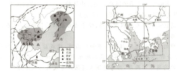 材料二:环渤海地区示意图、珠三角地区示意图。