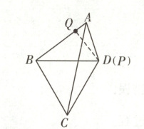 23. (7分)如图,四边形ABCD的三边AB,BC,CD和BD都为5 cm,动点P从点A出发按A→B→D的路线运动到点D,速度为2 cm/s.动点Q从点D出发按D→C→B→A的路线运动到点A,速度为2.8 cm/s.5 s时点P,Q相距3 cm,试确定5 s时△APQ的形状.