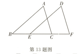 13.如图,点B,E,C,F在 条 直线上,AB =DE,BE=CF 请你添加一个条件________,使△ABC≌△DEF(填|个即可)