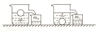 17.如图所示,水平桌面上放置两个溢水杯,分别装满甲、乙两种液体。将一个密度为ρ0的小球放入甲液体中,小球静止时漂浮,溢出液体的质量为m甲;再将小球放入乙液体中,小球静止时沉底,溢出液体的质量为m乙。则m甲_______m乙(填“>”“=”或“<”);乙液体的密度ρ乙=_______(用已知条件所给的字母表示)。