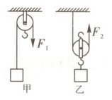 12.如图所示的两个滑轮中,属于动滑轮的是________。若滑轮的自重和摩擦不计,当分别用F1、F2匀速提起同一物体时,则F1、F2的大小关系是:F1________F2(填“>”“<"或“=”)。
