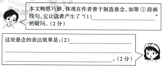 3. 读完本文后,同学们要为校刊征集一则“微小说”。请你结合第⑤段中的句子,发挥合理的联想和想象续写小说。(80字左右)(5分)