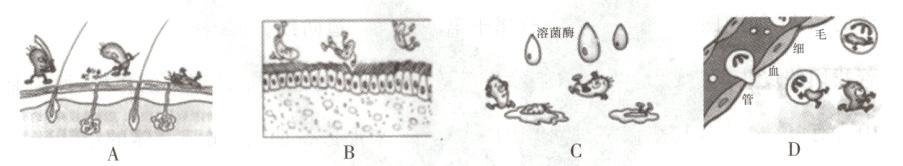 (2) 体液中的______和______构成人体的第二道防线。图______属于该道防线。