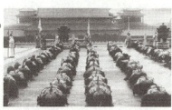 [点拨]本题考查对词语的理解。第1题,联系实际生活中人在酒力发作之后走路不稳的样子,可以猜出“踉踉跄跄”的意思。第2题,联系“一个个序齿排班,朝上礼拜”和影视剧中古代群臣朝拜皇帝的情景,可以猜出“拱伏无违”的意思。