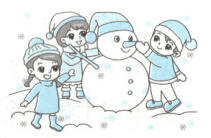 示例:大雪纷飞,积了厚厚的雪,像一张白色的大床,小朋友们一块儿堆了一个又高又大的雪人。小朋友们笑容满面地招呼我们看他们堆的雪人