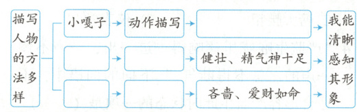 [点拨]本单元的语文要素是学习描写人物的基本方法。其中《摔跤》一文通过对小嘎子的动作描写,表现出他机灵的特点。《他像一棵挺脱的树》一文通过对祥子的外貌描写,表现出他健壮、精气神十足的特点。《两茎灯草》一文通过对严监生的动作描写,表现出他吝啬、爱财如命的特点。根据提示完成阅读单即可。