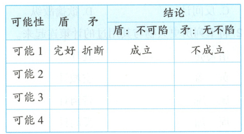 9.学科素养·思维能力 典典读完这个故事后,想要创造一个不自相矛盾的故事,请你帮他想想,楚人怎么卖自己的矛和盾才能自圆其说呢?