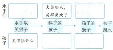 A. 水手们的笑推动了故事情节的发展。猴子在水手们的笑声中放肆地抢走了孩子的帽子,孩子在水手们的笑声中恼羞成怒地去追猴子并陷入了危险的境地。
