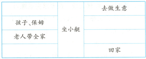 【点拨】本题考查获取信息的能力和对课文的理解能力。课文第5、6自然段主要写的是从白天到夜晚,小艇与人们生活的密切关系。根据表格中的提示,从课文中提取信息填写不同人乘坐小艇进行的不同活动即可。在水城威尼斯,人们的日常生活与小艇关系密切。白天,小艇出动,城市就热闹了。夜晚,小艇停泊,城市就静寂了。这一动一静可以突出小艇在威尼斯人生活中的重要地位。