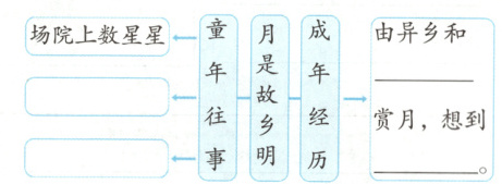 1. 新考法.思维导图 作者由月亮想到了哪些往事?读课文,补充下面的思维导图。