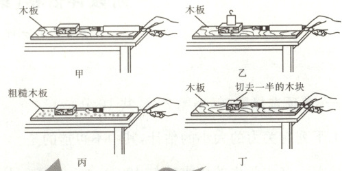 (3) 小伟要探究猜想③,他将木块切去一半,重复甲的操作过程,如图丁所示。他比较甲和丁的实验结果,得出结论:滑动摩擦力的大小与接触面积的大小有关。你认为他的结论可靠吗?答$:________$。小伟在实验中存在的问题是______________________________。