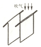 向两张纸中间吹气时,两张纸会向中间靠拢。因为流体流速越大的位置,压强越小。两张纸之间空气流速大,压强小;外侧空气流速小,压强大。使两张纸受到向内的压强差(或压力差),所以两张纸会向中间靠拢。(知识点叙述合理即可)