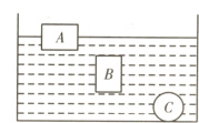 10.如图所示,A、B体积相同,B、C质量相等,将它们放入水中静止后,A漂浮,B悬浮,C沉底,则下列说法正确的是 ( )